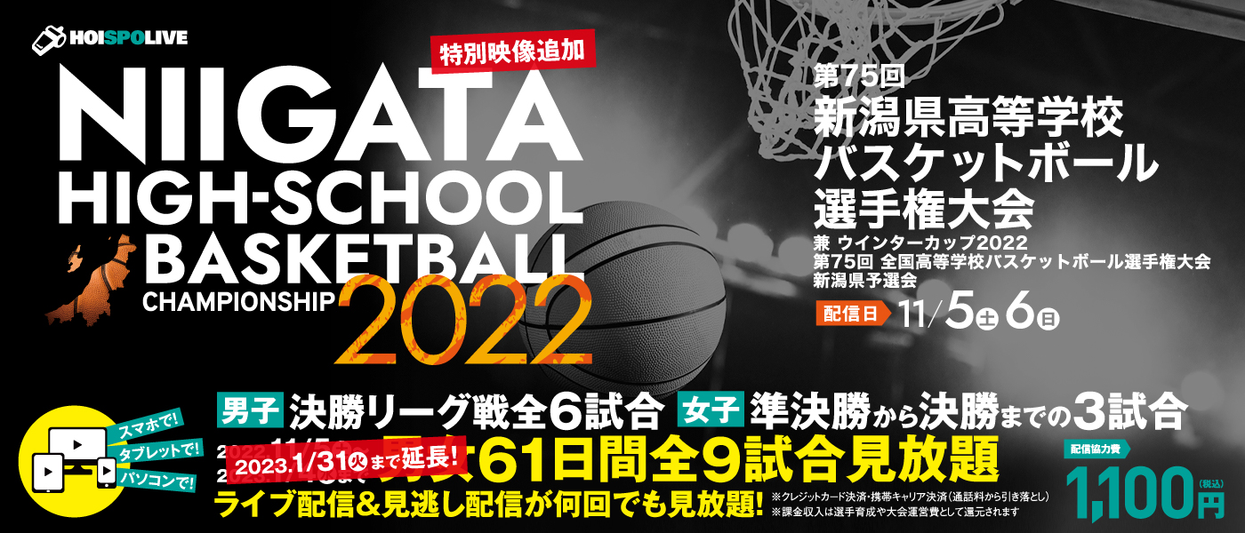 【配信終了】令和4年度 第75回新潟県高等学校バスケットボール選手権大会 兼ウインターカップ2022 第75回全国高等学校バスケットボール選手権大会 新潟県予選会